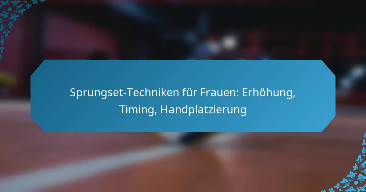 Die Sprungset-Techniken für Frauen im Volleyball sind entscheidend für die Ausführung effektiver Angriffsaktionen und basieren auf einer Kombination aus Höhe, Timing und Handplatzierung. Das Beherrschen dieser Fähigkeiten verbessert nicht nur die Leistung, sondern berücksichtigt auch die einzigartigen physiologischen Merkmale weiblicher Athleten, was zu einer verbesserten Genauigkeit und Kraft bei den Sets führt.